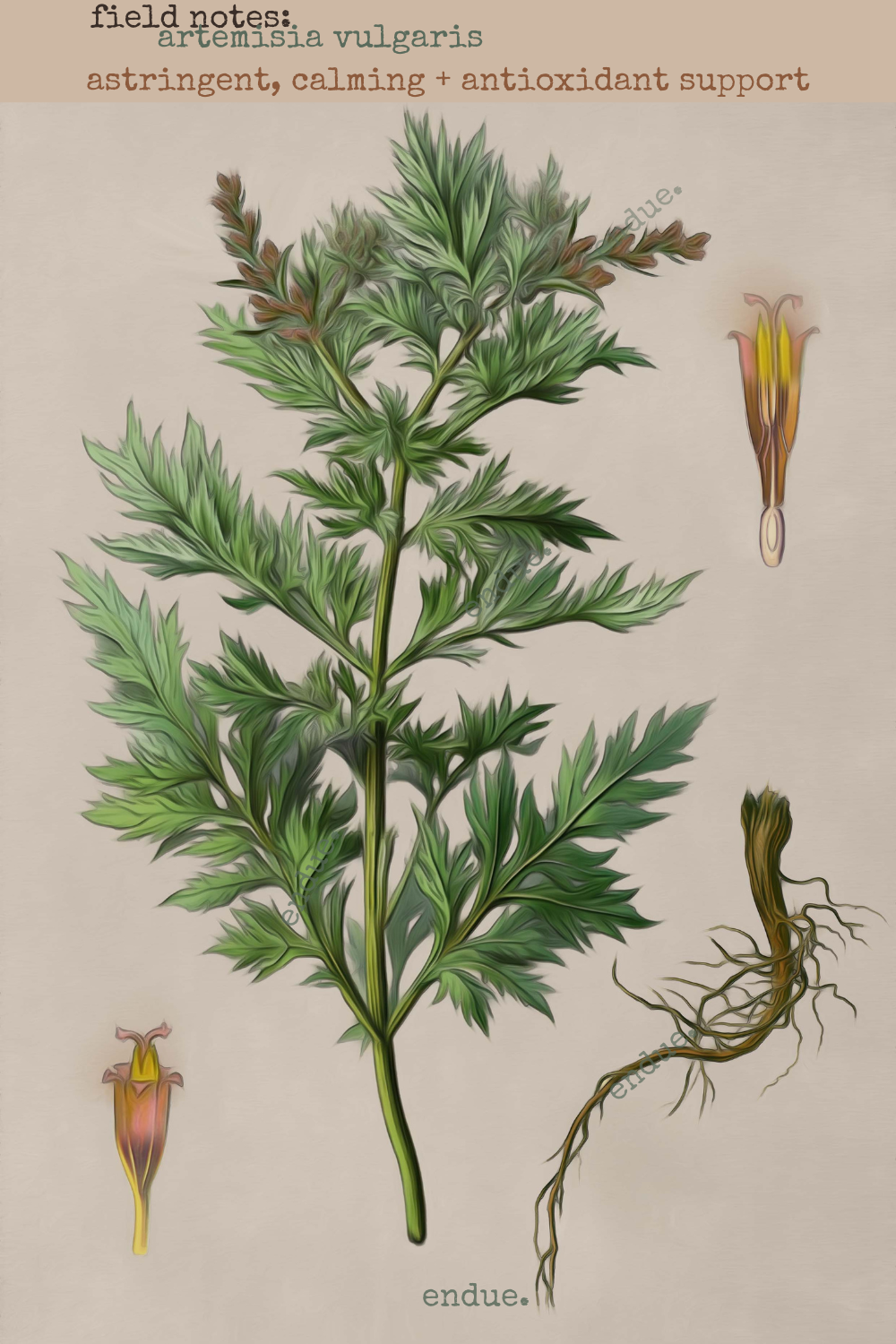 mugwort tends to act on overloaded or reactive systems. it can reduce irritation while also promoting movement (circulatory or lymphatic), depending on preparation and dose.